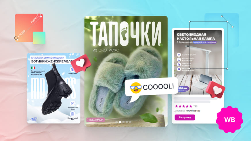 Какие программы можно использовать для разработки дизайна карточек товаров на маркетплейсах? Для тех селлеров, кто никогда не сталкивался с подобной задачей, рекомендуем простые сервисы и специальные приложения, где за несколько кликов можно создать вполне достойный визуальный контент.