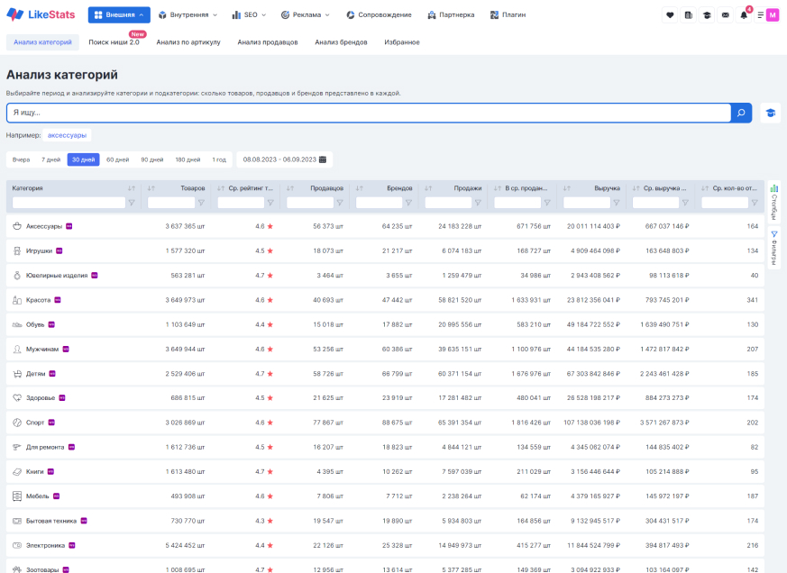 и внутренней аналитики собственных продаж на маркетплейсах от LikeStats!