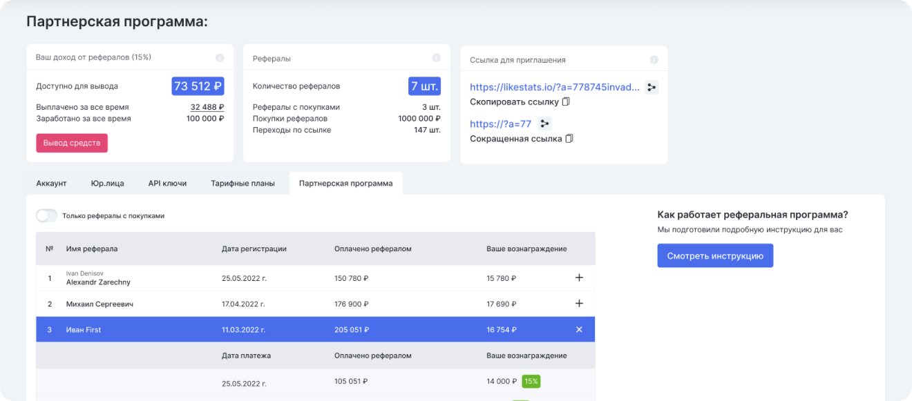 * пришедший по вашей ссылке клиент закрепляется за вами навсегда, с каждой его оплаты вы получаете вознаграждение